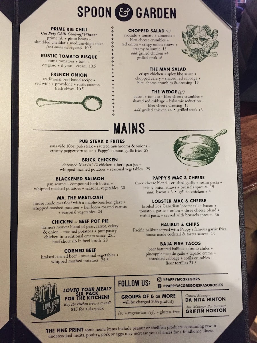 Welcome to Pappy McGregor's, a dining gem nestled in Paso Robles, CA! This inviting eatery showcases a menu that beautifully fuses comfort food with gourmet flair. Start with their award-winning Prime Rib Chili, a culinary delight packed with prime rib and pinto beans, sure to warm your soul for just $10.50.